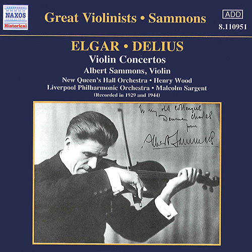 Arguably the finest English violinist of his generation, Albert Simmons was already leading adult orchestras by the tender age of 13. In 1908 he was heard by Thomas Beecham, who was so impressed with his playing that he made Sammons leader of the famous Beecham Orchestra, a post he held for five years. A string of prestigious orchestral posts soon followed but it was not long before his solo career took off, and for the next 30 years Sammons performed to great acclaim with nearly every British orchestra. This disc presents Sammons’ two greatest achievements – the first ever complete recording of Elgar’s sumptuous concerto, together with a later recording of Frederick Delius’s concerto, of which he was the dedicatee.