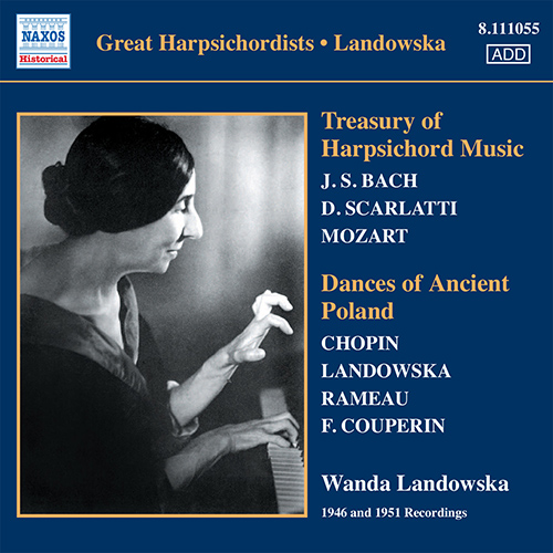 Wanda Landowska, who continued to perform and record up to her death in 1959, was renowned as the greatest harpsichordist of the first half of the twentieth century, resurrecting the instrument and taking a scholarly approach to the performance of music from the seventeenth and eighteenth centuries. This Naxos collection brings together 78rpm recordings first issued as a Treasury of Harpsichord Music, and an LP originally titled Landowska plays for Paderewski, about which Landowska herself wrote, ‘The pieces included in this recording are those Paderewski loved most. I often played them for him and – at his request – repeated them.