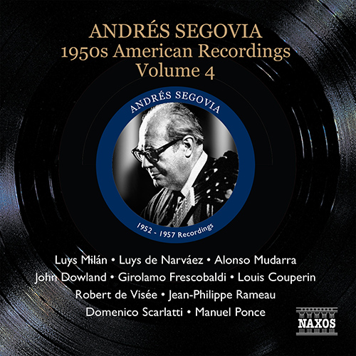 Volume 4 of Segovia’s 1950s American recordings is devoted in the main to his arrangements of music composed between 1535 and 1750. Although today it is customary to play this repertoire on reproductions of instruments authentically modelled on concepts of musicological research, Segovia preferred the 20th century guitar to all other instruments as an expressive medium. To his interpretations of the 16th century works of Milan, Narváez, Mudarra and Dowland, as well as the Baroque guitar of Robert de Visée and transcriptions from Scarlatti or Rameau, Segovia brings the same application of colour, variety of dynamics and rhythmic freedom as he applied to romantic pieces. This fullblooded approach to early music was greatly appreciated during his lifetime and often provided one of the few opportunities for the general public to become acquainted with this area of the repertoire.