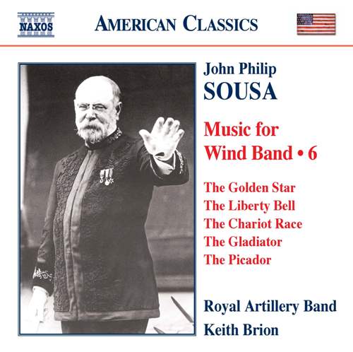 John Philip Sousa, known affectionately as “The March King”, personified turn-of-the-century America, the comparative innocence and brash energy of a still new nation. His ever-touring band represented America across the globe and brought music to hundreds of American towns. This Naxos series of recordings aims to record Sousa’s complete works for wind band, including the 136 marches and numerous other scores. This sixth disc in the series includes The Golden Star, a funeral march dedicated to Mrs Theodore Roosevelt ‘in memory of the brave who gave their lives that liberty shall not perish’, The Federal, composed for Sousa’s 1911 world tour, and The Gladiator, which quickly achieved widespread popularity. The Liberty Bell has achieved popular status as the signature tune for the BBC comedy Monty Python’s Flying Circus.