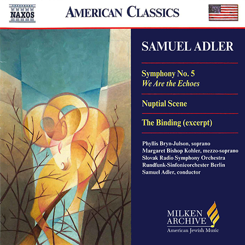 Samuel Adler, one of America’s most respected composers, is equally known for his Judaic and general concert works. The selection of works on this CD embraces choral, cantorial, chamber, solo, and symphonic music, culminating in the Symphony No. 5, We Are the Echoes, which is based on Jewish poetry reflecting aspects of Jewish experience throughout history. The finale quotes the Jewish philosopher Heschel: “Now and then, high above me, I catch a glimpse of the faceless face of God.”
