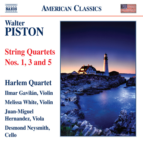 Much lauded in his lifetime, Walter Piston is remembered chiefly today for his eight Symphonies, the two Violin Concertos (8.559003) and the popular ballet, The Incredible Flutist (8.559160). This recording presents three of the five string quartets, which range from from the lithe neo-Classicism of the First Quartet and the rhythmic trenchancy and intense melodic writing of the Third Quartet to the forceful yet accessible Fifth. This is the Naxos début of the Harlem Quartet, an ensemble comprising First-Place Laureates of the Sphinx Competition for young Black and Latino string players. More of Piston’s chamber music is available on 8.559071.