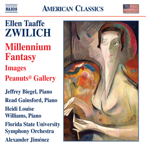 Among America’s most admired, awarded and frequently performed composers, Ellen Taafe Zwilich, who celebrated her 70th birthday in 2009, remains young at heart. Performed here by virtuoso pianist Jeffrey Biegel for whom it was written, Millennium Fantasy is based on a folksong that Zwilich’s grandmother sang to her as a child. Images drew its inspiration from a number of paintings held at the National Museum of Women in the Arts in Washington, D.C., including the Alice Bailly self-portrait reproduced on the cover of this disc. Zwilich, herself featured in Charles M. Schulz’s famous Peanuts® comic strip, returned the favor with a delightful series of musical portraits of Schroeder, Linus, Snoopy, Charlie Brown, Lucy, Peppermint Patty and Marcie.