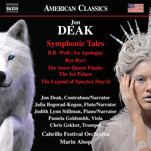 Jon Deak is a composer who ‘has more fun with music than anyone i know’ (New York Newsday), and all of the pieces on this album of symphonic stories for young and old alike involve the performers as narrators. These tales include the wolves of Canada and Alaska in B.B. Wolf (An Apologia), a loving tribute to the immigrants of America in Bye-Bye!, and a dramatic and virtuoso version of Hans Christian Andersen’s The Snow Queen Finale. The Legend of Spuyten Duyvil is a tale of old New Amsterdam that invokes the heroic spirit of trumpeter Anthony Van Corlaer.
