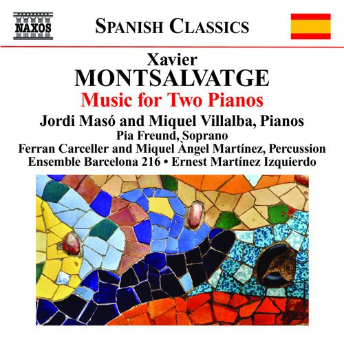 Xavier Montsalvatge was a major contributor to Catalonian culture in the 20th century. His works for two pianos collect most of his musical preoccupations into a single programme. The jazz-tinted Barcelona Blues reflects his “passion for the ballet”, and the Tres divertimentos his fascination with ‘Les Six’. Borrowing the sonorities of Bartók, Sum Vermis expresses the “tortured symbolism” of Jacint Verdaguer’s poetry. One of Montsalvatge’s own favourites, the rarely performed 5 Invocaciones al Crucificado evokes biblical dramatic intensity, and the self-paraphrasing Calidoscopio looks back over the composer’s own creative past. Jordi Masó’s complete recording of Montsalvatge’s solo piano music can be found on 8.570744 and 8.570756.