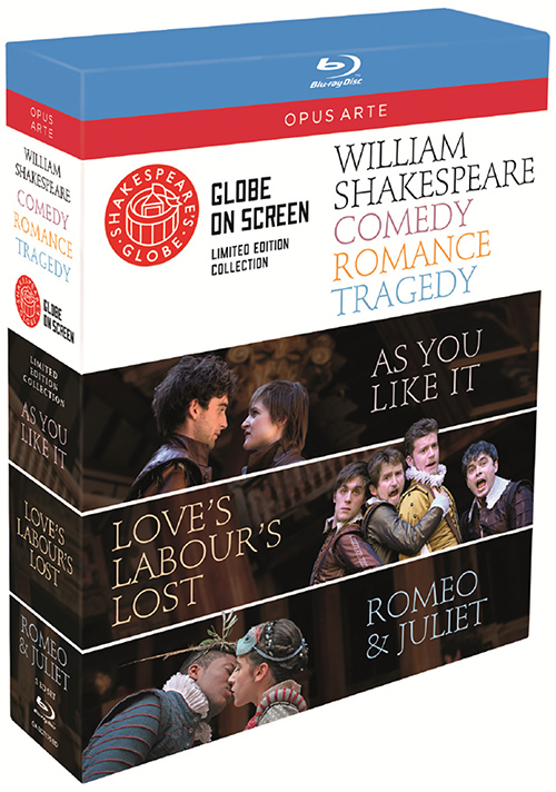 Recorded live at Shakespeare’s Globe Theatre, London, August (Romeo and Juliet) and October (As You Like It, Love’s Labour’s Lost) 2009