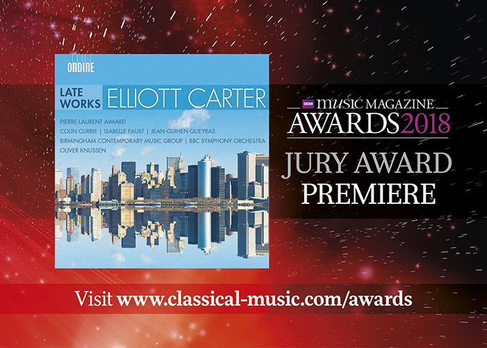 On April 5th, BBC Music Magazine announced the list of winners for its annual awards at Kings Place in London. Among the winners was Ondine’s album of late works by Elliott Carter which received the Premiere Jury Award.