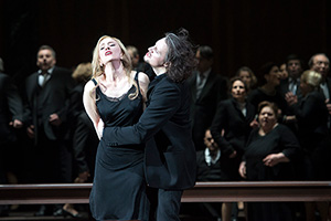 Stefan Herheim deconstructs the traditional sets of the company’s previous production, creating a mixture of old and new with a sober twist: Mimi (Marita Sølberg) dies of cancer at the start, and the opera is reconfigured as Rodolfo’s (Diego Torre) refusal to admit it.