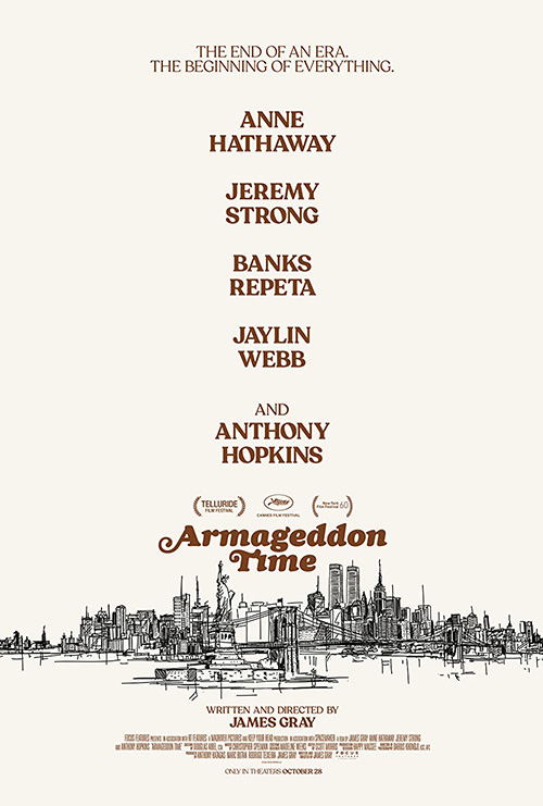 From acclaimed filmmaker James Gray, Armageddon Time is a deeply personal story of the strength of family, the complexity of friendship and the generational pursuit of the American Dream. The film features an all-star cast including Anthony Hopkins, Anne Hathaway and Jeremy Strong.