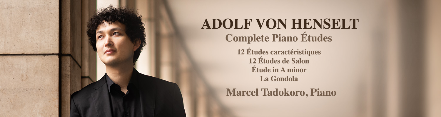 Marcel Tadokoro, PianoAdolf von Henselt belongs firmly in the realm of 19th-century composer-pianists such as Chopin, Schumann and Liszt. He was influential in establishing a true Russian school of pianism and held in high esteem by Rachmaninov. Henselt’s virtuoso technique was admired for its cantabile qualities but his performing career was cut short by extreme stage fright. Dating from early in his career, the études blend technical demands with clarity of vision and a lyrical poetic expressiveness often reflected in colourful descriptive titles.