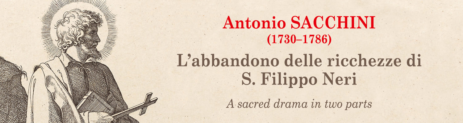 Antonio Sacchini’s renowned melodic gifts and facility as a composer were developed amid the flourishing Neapolitan school of opera but, outgrowing the Italian tradition, he later found inspiration working in London and Paris. The oratorio L’abbandono delle ricchezze di S. Filippo Neri narrates the spiritual trials of St Philip Neri as he is hounded by the personifications of Splendour and Deception on his journey, assisted and defended by Poverty, towards God and virtue. First performed in 1765, L’abbandono is heard here in its world premiere recording.