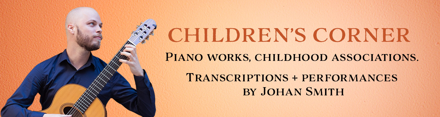 Johan Smith, GuitarMulti-award-winning guitarist Johan Smith has considerably extended his instrument’s repertoire with this selection of transcriptions celebrating childhood in a variety of ways. These popular piano works – Schubert’s Erlkönig, Granados’s atmospheric Tales of Youth, Mozart’s elegant Sonata facile, Schumann’s Scenes from Childhood and the exquisitely sensitive and insightful miniatures of Debussy’s Children’s Corner – are presented in a totally natural and idiomatic manner within the guitar’s distinctly expressive soundworld.