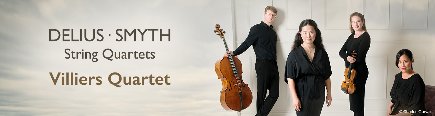 Villiers QuartetThe String Quartet in E minor by Ethel Smyth, one of the most innovative and original figures in English music, has a masterful coherence and consistency. With eloquent writing for the viola in particular, it is both playful and reverential, and ends with a flourish – forthright, bold and uncompromising, like Smyth herself. Delius wrote the early String Quartet in 1888 but it was rejected for performance and he was later to reuse the Scherzo for his mature Quartet of 1916–19 (8.573586). In 2018 the score of the two opening movements of the 1888 Quartet, long assumed lost, reappeared at auction and have been edited and reunited with the final two in this premiere recording, which adds significantly to our understanding of Delius’ early compositional directions.