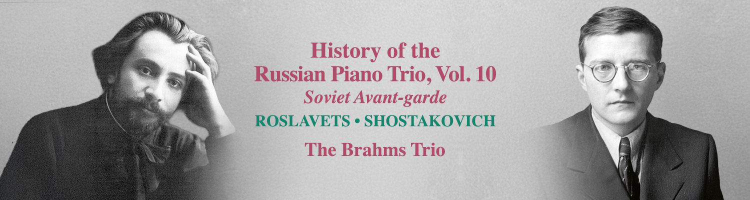 This is the final album in our series The History of the Russian Piano Trio, and what an exhilarating journey it has been, with consistently glowing reviews for outstanding performances by the Moscow-based Brahms Trio. This final programme of works from the Soviet avant-garde era, during which music for piano trio was exceptionally popular, features music by Nikolay Roslavets, one of the great musical innovators of the 20th century, and by Shostakovich, whose Piano Trio No. 2 is one of the most performed of all his chamber works.