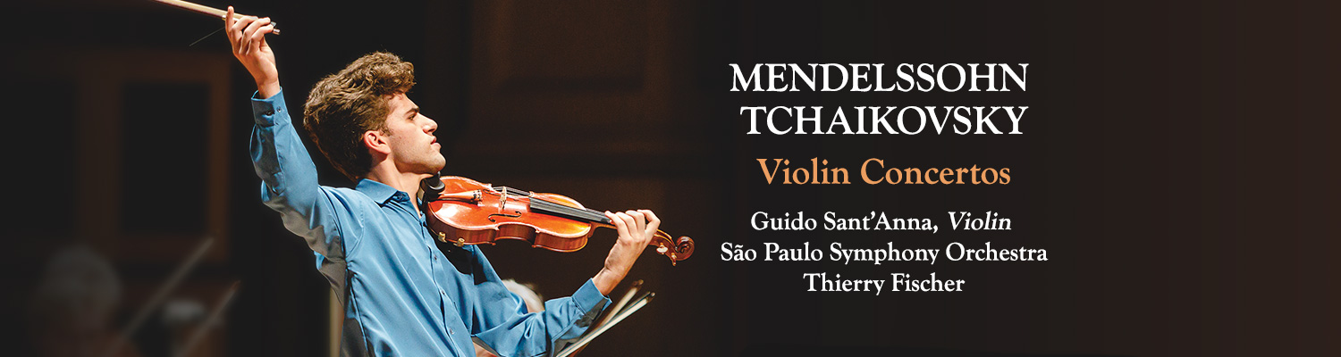 Mendelssohn conceived the Violin Concerto in E minor for his childhood friend, Ferdinand David, concertmaster of the Gewandhausorchester Leipzig, though it took the composer years to perfect it. The concerto remains one of the most significant works in the genre – serene, lyrical and luminous. Tchaikovsky’s Violin Concerto in D major is another of the 19th century’s greatest concertos, written for his favourite student, Iosif Kotek, and a work of great beauty bristling with virtuoso challenges. On this album they are performed by the brilliant Guido Sant’Anna, the first South American violinist to win the prestigious Fritz Kreisler International Competition.