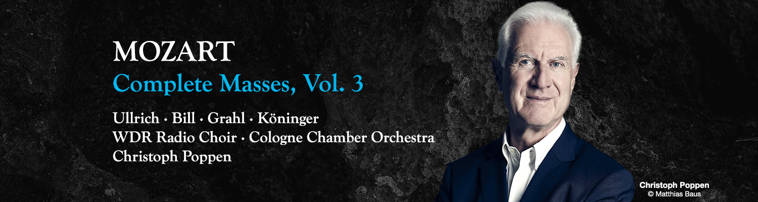 This third volume in our series of Mozart’s Complete Masses will surely prove as attractive as its predecessors. Vol. 1 (8.574270) received an ICMA nomination and prompted BBC Music Magazine to comment that ‘under Poppen, K. 262’s Kyrie bowls along at quite a lick, its counterpoint muscular and surprisingly bouncy.’ Vol. 2 (8.574417) also impressed: ‘Christoph Poppen leads a fine team of soloists, as well as the Cologne Radio Choir and the Cologne Chamber Orchestra … Lively tempi, light textures, and reserve characterise these small-scale, modern-instrument performances.’ (MusicWeb International) Vol. 3 now spotlights three masses written in Salzburg when Mozart was in his late teens and early twenties.