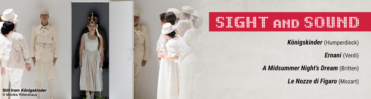 Four fine productions from celebrated European opera houses comprise this month’s set of new audiovisual releases. Dutch National Opera presents Humperdinck’s Königskinder in a latter-day revival of the work featuring the hallmark creativity of Christof Loy, one of the most sought-after opera and theatre directors of his generation. From London’s Royal Opera we have Mozart’s Le Nozze di Figaro, arguably the greatest comic opera ever written, while Britten’s A Midsummer Night’s Dream can be enjoyed in Peter Hall’s 1981 Glyndebourne production, ‘regarded by many as the definitive staging of the work.’ (The Guardian) Finally, from Italy’s renowned opera festival the Maggio Musicale Fiorentino, we have a wonderful production of Verdi’s Ernani, that immediately captivated audiences and critics alike following its premiere in 1844, and continues to do so!