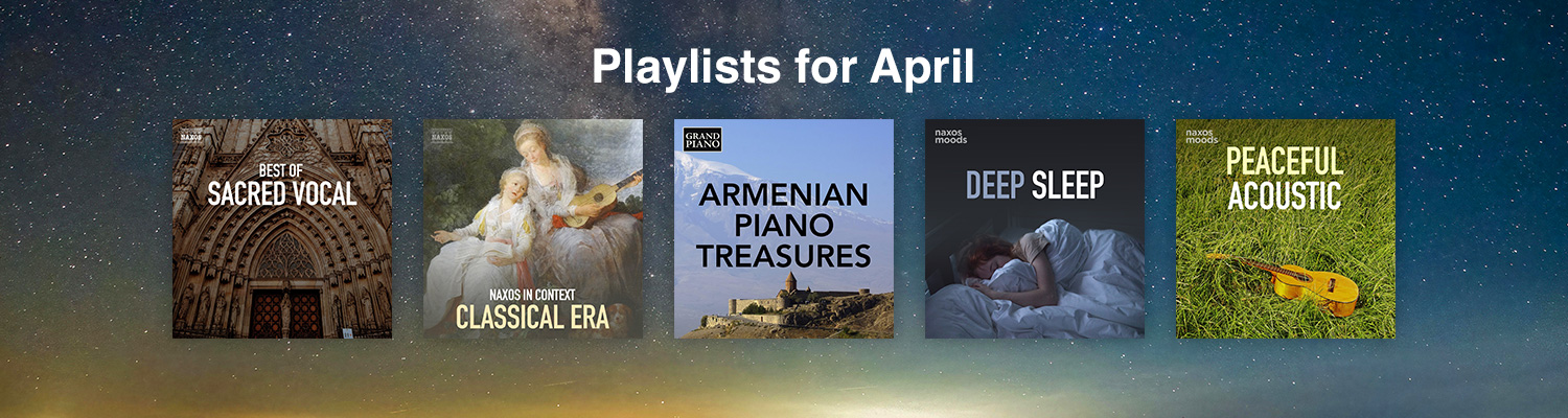Looking for new music? Our selection of curated playlists has you covered with music to complement the season, moment, or activity! This month from Naxos, discover the music of Bach, Handel, and more with the Best of Sacred Vocal playlist and explore works from the 18th and 19th centuries with Naxos in Context: Classical Era. Experience the beauty of Armenian musical heritage through Grand Piano’s Armenian Piano Treasures, featuring captivating compositions by the country’s talented musicians. Then, from Naxos Moods, get your best night’s rest with Deep Sleep, and enjoy a calm start to your day with Peaceful Acoustic. Happy listening!