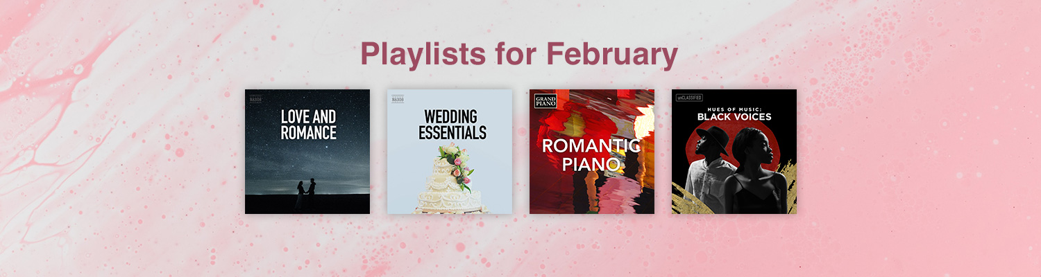 Looking for new music? Our selection of curated playlists has you covered with music to complement the season, moment, or activity! Set a romantic mood with the Love and Romance playlist and discover new romantic favourites with the Wedding Essentials playlist from Naxos. Explore vibrant classical music by notable Black composers and performers with the Hues of Music: Black Voices playlist from unCLASSIFIED. Declutter your mind with Strings in the Background from Naxos Moods and enhance your ordinary date night into a special and romantic evening with Grand Piano's Romantic Piano playlist. Happy Listening!