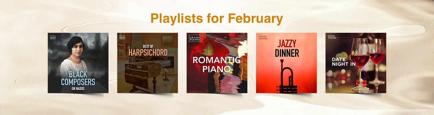 Looking for new music? Our selection of curated playlists has you covered with music to complement the season, moment, or activity! This month from Naxos, explore works by notable Black composers with the Black Composers on Naxos playlist and discover iconic works for harpsichord with the Best of Harpsichord playlist. Then, from Grand Piano, enjoy precious moments with someone special with the Romantic Piano playlist. Finally, from Naxos Moods, create the perfect ambience with the Jazzy Dinner playlist and stay in for the night with the Date Night In playlist. Happy listening!