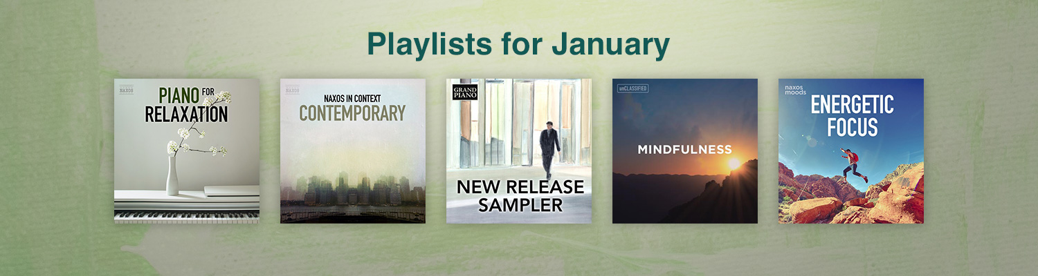 Looking for new music? Our selection of curated playlists has you covered with music to complement the season, moment, or activity! This month from Naxos, immerse yourself in beautiful piano melodies with Piano for Relaxation, and discover classical music written between the mid-20th century and today with Naxos in Context: Contemporary. Then, from Naxos Moods, kick off the new year with Energetic Focus, and find inner peace with Mindfulness. And from Grand Piano, delve into the latest and most remarkable additions to their collection in the Grand Piano New Release Sampler playlist. Happy listening!