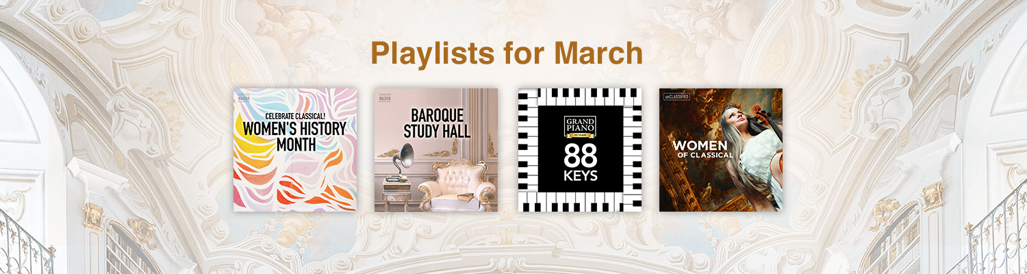 Looking for new music? Our selection of curated playlists has you covered with music to complement the season, moment, or activity! Explore the incredible impact of female composers in the Celebrate Classical! Women’s History Month playlist and discover new works by female artists in unCLASSIFIED’s Women of Classical playlist. Celebrate 10 years of outstanding Grand Piano recordings with Grand Piano’s 88 Keys playlist and get in the zone with Baroque Study Hall from Naxos. Happy listening!