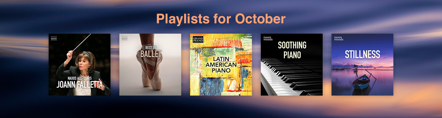 Looking for new music? Our selection of curated playlists has you covered with music to complement the season, moment, or activity! This month from Naxos, discover award-winning recordings from conductor JoAnn Falletta as part of our brand-new Naxos All-Stars playlist series, and listen to best-loved ballet works in Best of Ballet. Then, from Naxos Moods, explore some of the most relaxing works for piano in Soothing Piano, and find a moment of peace with Stillness. Explore the rich and vibrant world of Latin piano music through Grand Piano’s carefully curated Latin American Piano playlist. Happy listening!