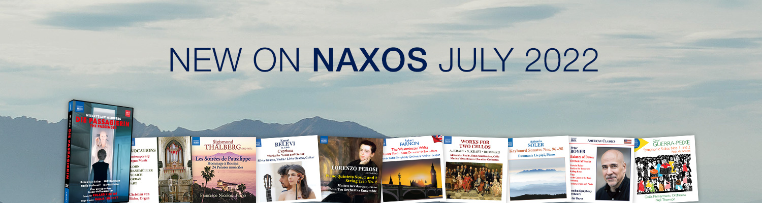 The July NEW ON NAXOS highlights the latest addition to our critically acclaimed ‘Music of Brazil’ series, featuring César Guerra-Peixe’s Symphonic Suites Nos. 1 and 2 recorded by the Goiás Philharmonic Orchestra and conductor Neil Thomson. Other highlights include Opera Graz’s revival of Mieczysław Weinberg’s opera Die Passagierin, Piano Quintets by Lorenzo Perosi, Keyboard Sonatas by Antonio Soler, and many more.