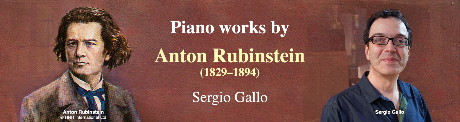 Sergio Gallo, PianoAnton Rubinstein occupied an uneasy place in the history of Russian music, largely because of his Jewish origins and the perception of him as a ‘German in Russia’. In recent years his solo piano music has begun to be re-evaluated. This album focuses on the series of works written in the mid-1850s and reveals music of charm and flair. The Three Pieces, Op. 16 are conventional in form but attractive, and the Two Pieces, Op. 28 contain a strongly contrasted Nocturne and Caprice. More ambitious, and intended to be performed in his concert repertoire as one of the greatest virtuosos of the age, are the Six Pieces, Op. 51.