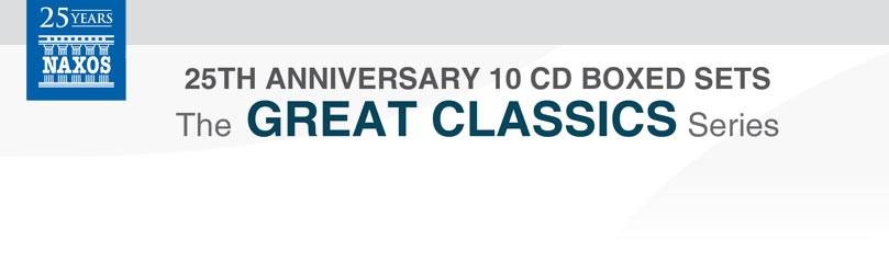 The GREAT CLASSICS series from Naxos is the perfect introduction to myriad genres of classical music. Comprising both complete and compiled selections from the greatest works in the repertoire, the boxes are bursting with wonderful pieces of music, both recognizable and unfamiliar. The boxes take the listener on a thrilling tour of some of the world’s most dramatic musical media, encompassing music from six centuries and featuring sensational performers. All boxes come with a fascinating booklet with detailed information on the genre itself, chronological placement of each work, and a comprehensive study of the music. A fitting celebration of 25 years of superb music from Naxos, the world’s favourite classical label.