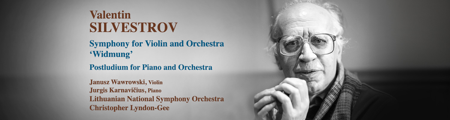Valentin Silvestrov, Ukraine’s leading composer, currently lives in exile in Berlin. His life in the late-Soviet period was harsh and included expulsion from the Composers’ Union which led to his withdrawal from participation in public life. This album brings together the two superlative works of Silvestrov’s early maturity. Postludium for Piano and Orchestra is yearning and dissonant, embodying the atmosphere of a lament, but without nostalgia, cast in a style full of ambiguity and allusion. The Symphony for Violin and Orchestra ‘Widmung’ is another melancholy, mystic work, a homage to the human spirit and life-force, but also, through hard-won lyricism, to love, hope and renewal.