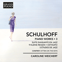 우리에게는 다소 생소할 수 있는 20~21세기 작곡가들의 피아노곡을 발굴하여 청량한 음향과 함께 색다른 음반을 내놓고 있는 그랜드피아노 레이블에서 카롤리네 바이허트는 체코 작곡가 에르빈 슐호프(1894~1942)의 피아노 독주곡집을 지속적으로 녹음·발매하고 있다. 슐호프는 1930년에 재즈 오라토리오를 작곡할 정도로 재즈적인 요소와 기법을 많이 활용한 작곡가. 이번 3집 앨범에는 슐호프가 1913년부터 1931년까지 작곡·발표한 5곡의 독주곡을 담았다. 이를 통하여 동유럽의 정서와 재즈의 묘한 랑데부를 느낄 수 있다.