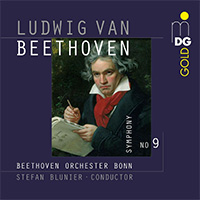 베토벤의 고향 본에 위치한 베토벤 오케스트라 음악감독으로 취임한 슈테판 블루니어는 엠데게에서 8종의 SACD앨범을 발매했다. 1806년에 창단된 오케스트라와 2008년에 취임한 지휘자는 18세기 작곡가 프란츠 단치부터 20세기의 말러를 녹음해왔다. 베토벤 교향곡 1·5번을 수록한 음반에 이어 이번에는 교향곡 9번을 내놓았다. 녹음 장소였던 본 베토벤홀의 음향과 엠데게가 자랑하는 멀티채널 레코딩(2+2+2 Recoding)이 청량한 울림과 화려함을 한층 더한다. 이러한 음향조건은 이들의 교향곡 9번을 희망과 밝은 분위기로 가득 채운다.