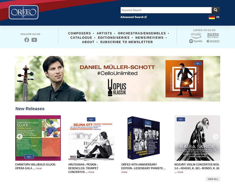 Nominations for other labels in the Naxos Music Group went to BelAir Classiques [1] Capriccio [3], Oehms Classics [5], Ondine [5], Opus Arte [2], Orfeo [2] and SWR Music [4].