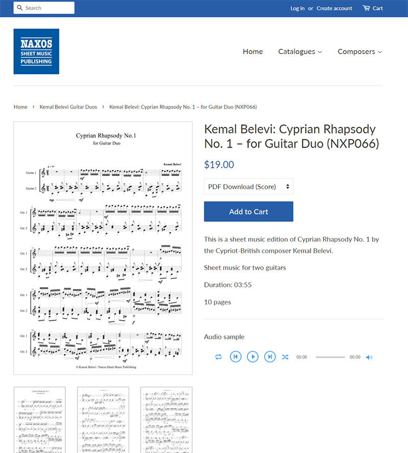 Naxos Sheet Music Publishing offers high quality sheet music editions from a fine collection of works, composers and arrangers, such as Debussy, Lehár, Brahms, Breiner, Janáček, Mussorgsky, Bériot, Kreutzer, Rode, Spohr and Vieuxtemps. From 19th-century violin concertos to contemporary Scandinavian piano music, the website presents music scores that may be downloaded as a PDF file to be printed later, purchased as a printed copy, or even rented. Naxos Publishing's catalogue is continuously expanding as more compositions and arrangements are added, and is yet another example of Naxos' dedication to every aspect of music.
